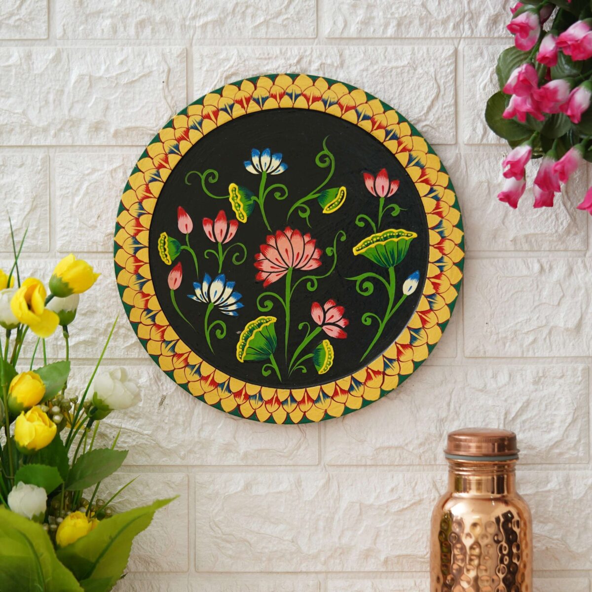 Vibrant Floral Pichwai Painting on Black Background